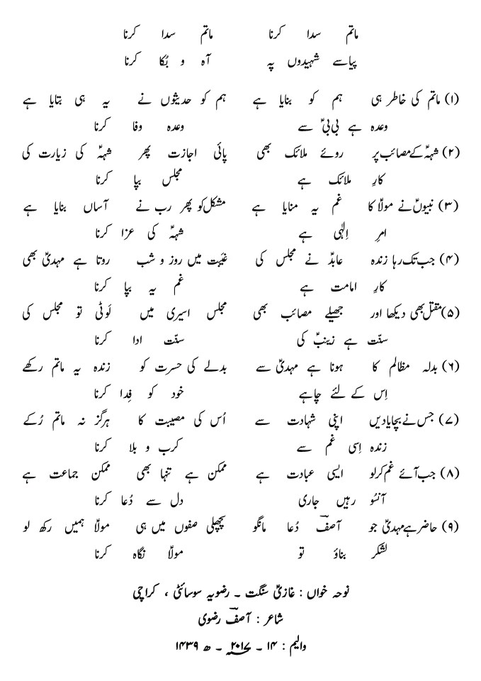 GHAZI (a.s.) SANGAT, RIZVIA SOCIETY, NAZIMABAD, KARACHI
